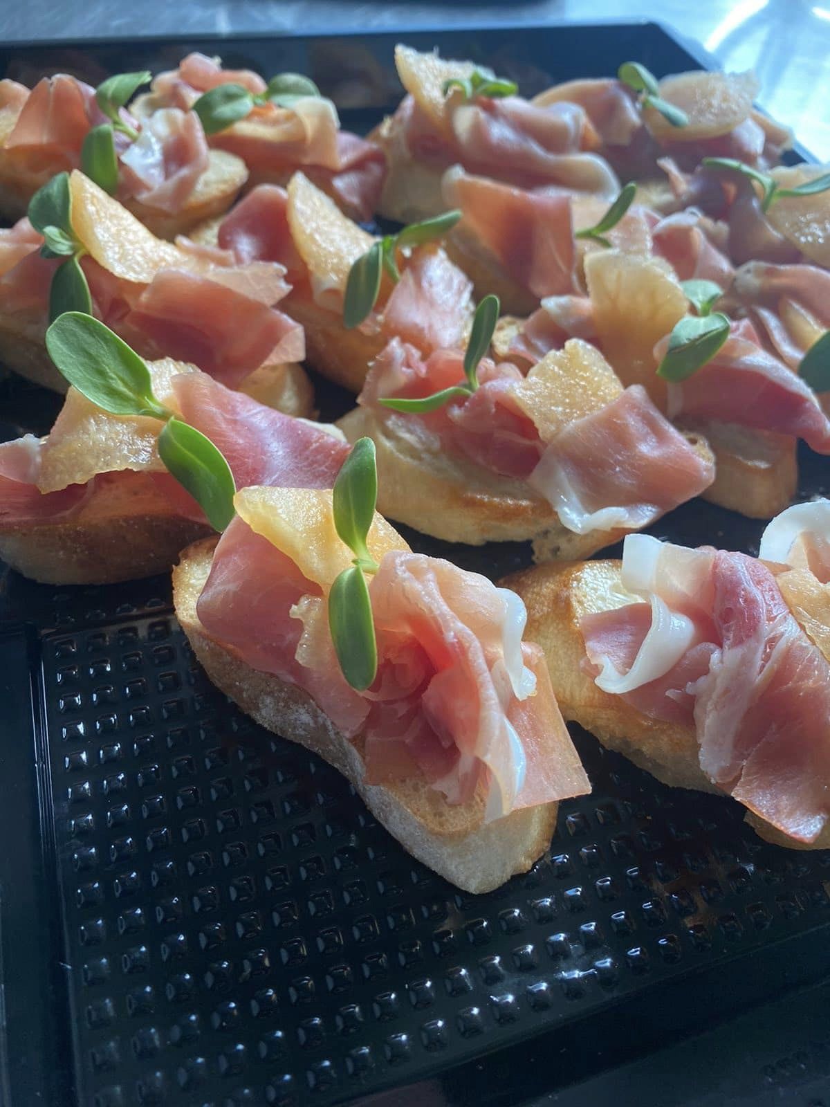 • Küpsetatud sealiha (oma valikul: sibul, seened, tomatid, majonees, juust)